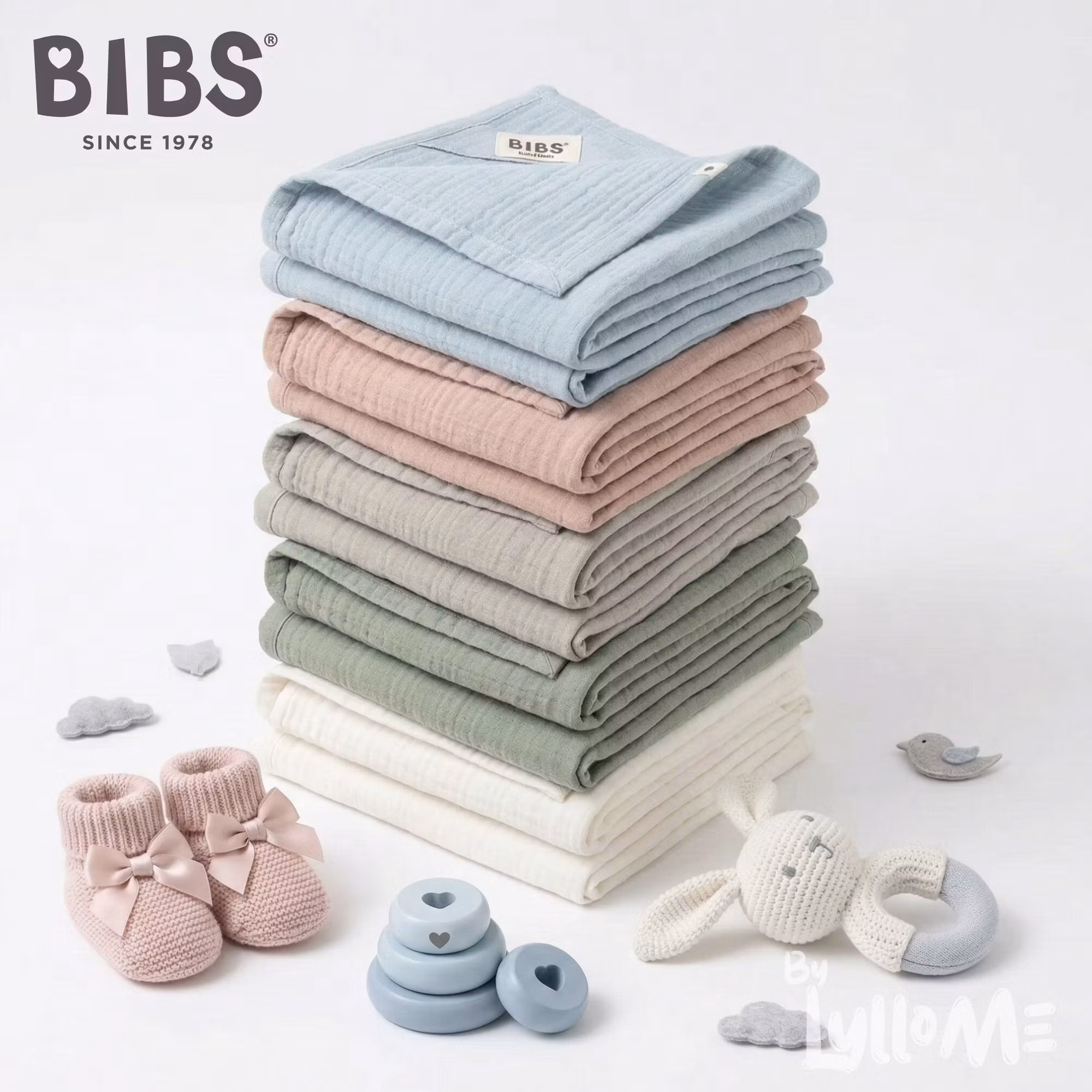 BIBS muslinduk är multifunktionell babyduk som kan användas som en rapduk, amningsskydd, skydd på skötbädden eller som haklapp.