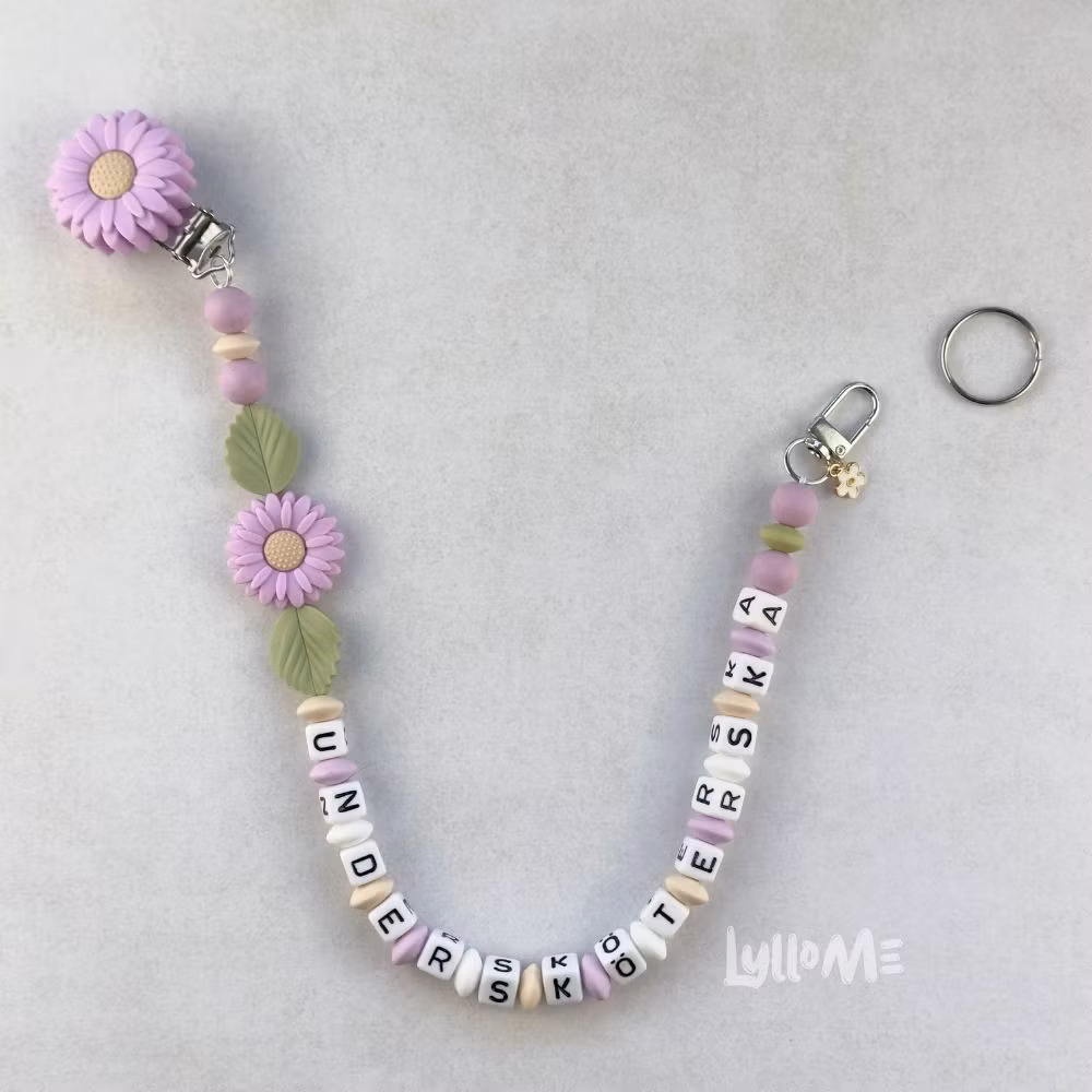 ID-KORT/ NYCKEL HÅLLARE med text Undersköterska med BLING, silikonpärlor och akrylbokstäver trädda på ett elastiskt band på ett clips i i silikon med en Daisy