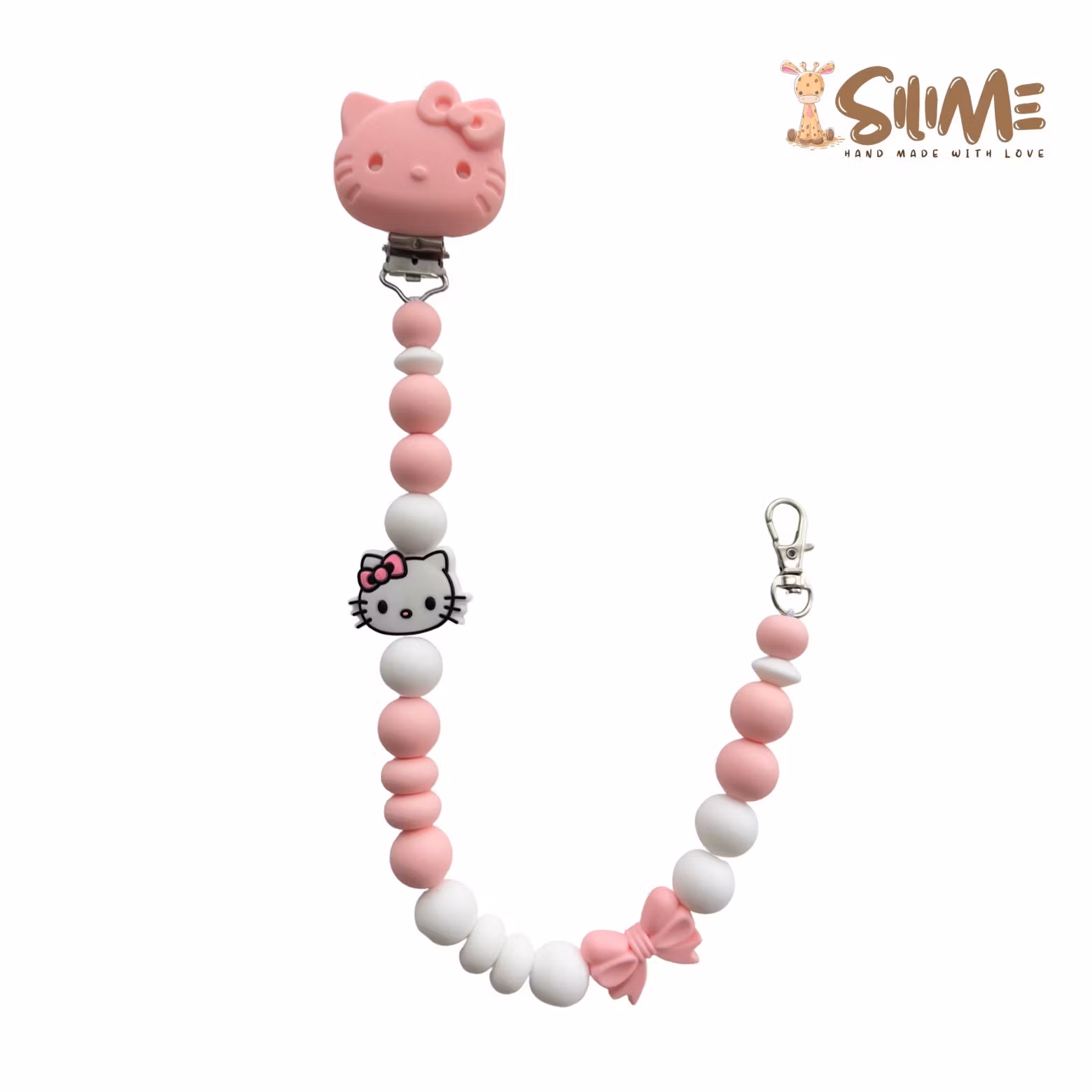 Badgehållare med silikonpärlor trädda på elastiskt band som fäster på ett clips i silikon.
