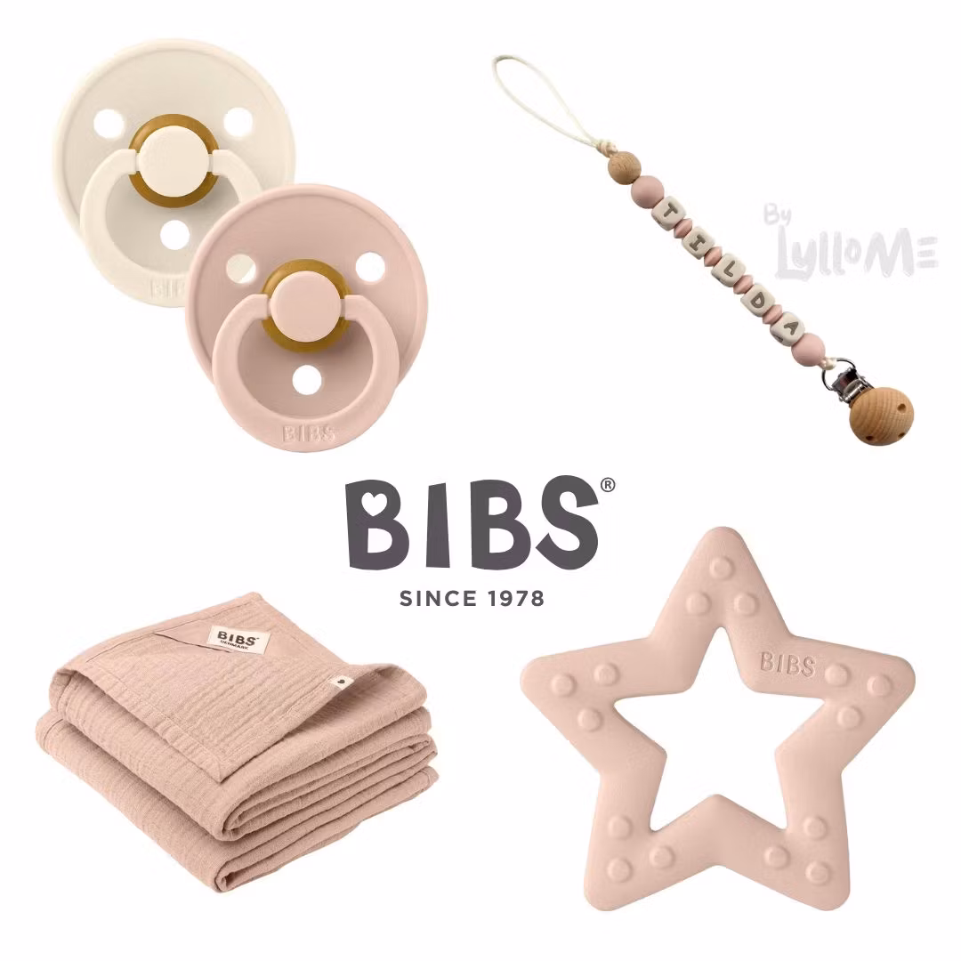 BIBS STORA GÅVOSET med By LylloMe Napphållare med namn BLUSH /OLD LIGHT PINK