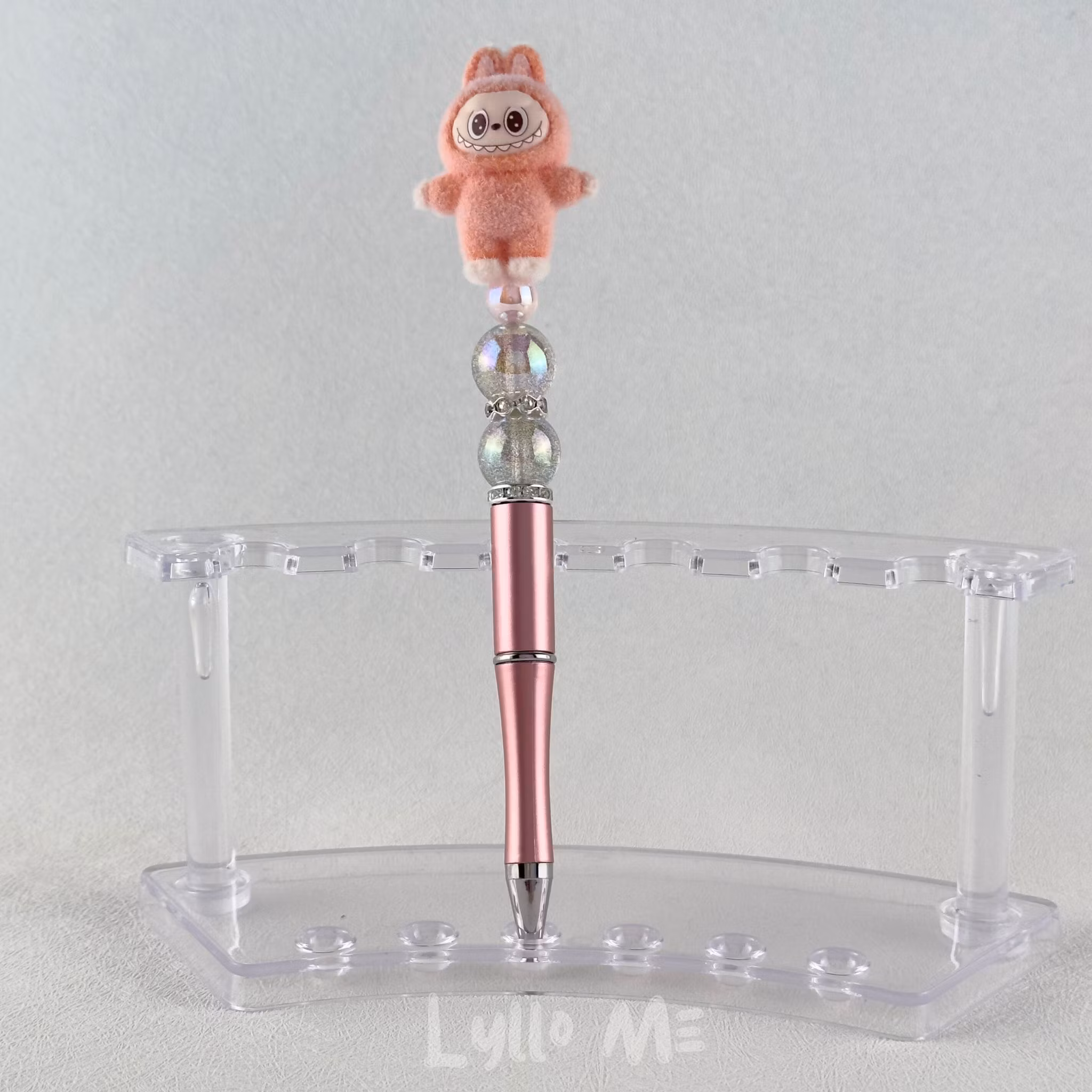 PENNA med söt flockad figur Rosa ( inkl refill )Penna i plast skimrande (se bild )